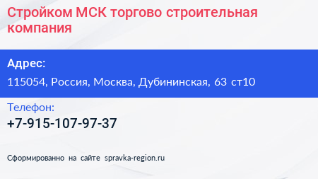 Стройком МСК, торгово-строительная компания по адресу 115054, Россия, Москва, Дубининская, 63 ст10 в дальнейшем Организация, размещена в следующих категориях: