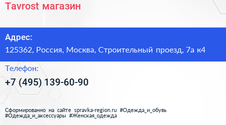Tavrost, магазин по адресу 125362, Россия, Москва, Строительный проезд, 7а к4 в дальнейшем Организация, размещена в следующих категориях: