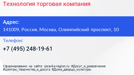 Технология, торговая компания по адресу 141009, Россия, Москва, Олимпийский проспект, 10 в дальнейшем Организация, размещена в следующих категориях: