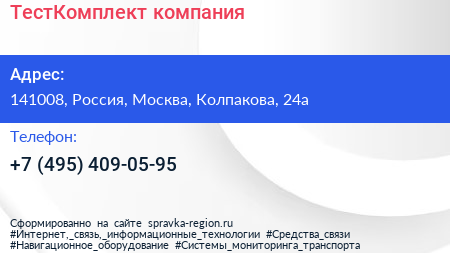 ТестКомплект, компания по адресу 141008, Россия, Москва, Колпакова, 24а в дальнейшем Организация, размещена в следующих категориях: