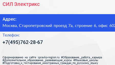 СИЛ Электрикс по адресу Москва, Старопетровский проезд 7а, строение 6, офис 602 в дальнейшем Организация, размещена в следующих категориях: