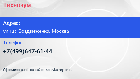 Технозум по адресу улица Воздвиженка, Москва в дальнейшем Организация, размещена в следующих категориях: