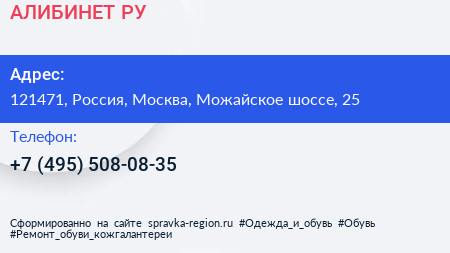 АЛИБИНЕТ.РУ по адресу 121471, Россия, Москва, Можайское шоссе, 25 в дальнейшем Организация, размещена в следующих категориях: