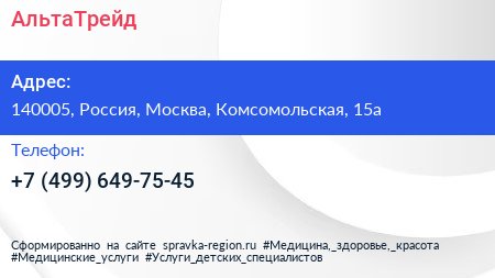 АльтаТрейд по адресу 140005, Россия, Москва, Комсомольская, 15а в дальнейшем Организация, размещена в следующих категориях: