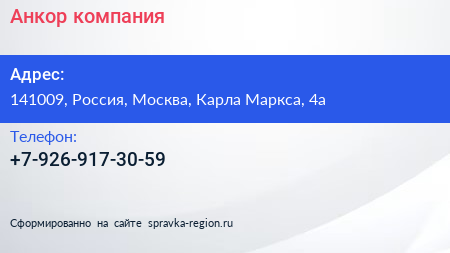 Анкор, компания по адресу 141009, Россия, Москва, Карла Маркса, 4а в дальнейшем Организация, размещена в следующих категориях: