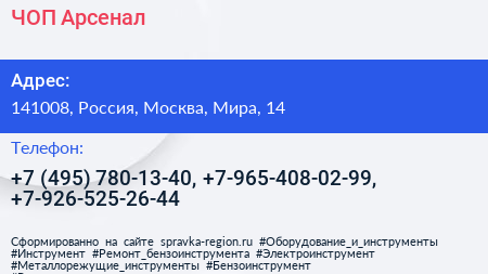 ЧОП Арсенал по адресу 141008, Россия, Москва, Мира, 14 в дальнейшем Организация, размещена в следующих категориях: