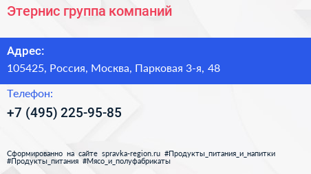Этернис, группа компаний по адресу 105425, Россия, Москва, Парковая 3-я, 48 в дальнейшем Организация, размещена в следующих категориях: