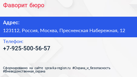 Фаворит, бюро по адресу 123112, Россия, Москва, Пресненская Набережная, 12 в дальнейшем Организация, размещена в следующих категориях: