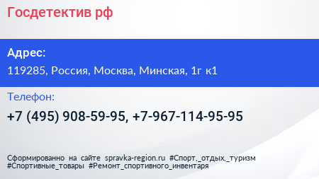 Госдетектив.рф по адресу 119285, Россия, Москва, Минская, 1г к1 в дальнейшем Организация, размещена в следующих категориях: