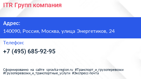 ITR Групп, компания по адресу 140090, Россия, Москва, улица Энергетиков, 24 в дальнейшем Организация, размещена в следующих категориях: