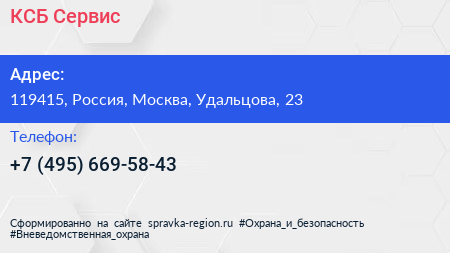 КСБ Сервис по адресу 119415, Россия, Москва, Удальцова, 23 в дальнейшем Организация, размещена в следующих категориях: