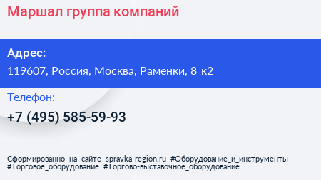 Маршал, группа компаний по адресу 119607, Россия, Москва, Раменки, 8 к2 в дальнейшем Организация, размещена в следующих категориях: