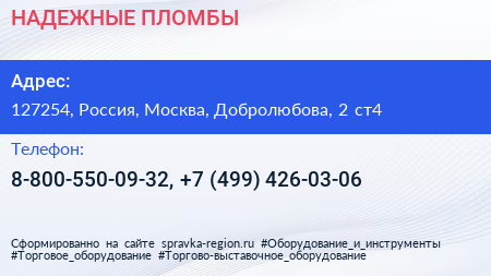 НАДЕЖНЫЕ ПЛОМБЫ по адресу 127254, Россия, Москва, Добролюбова, 2 ст4 в дальнейшем Организация, размещена в следующих категориях: