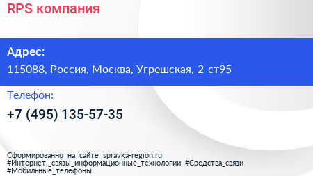 RPS, компания по адресу 115088, Россия, Москва, Угрешская, 2 ст95 в дальнейшем Организация, размещена в следующих категориях: