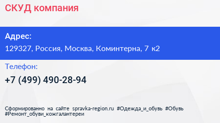 СКУД, компания по адресу 129327, Россия, Москва, Коминтерна, 7 к2 в дальнейшем Организация, размещена в следующих категориях: