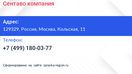 Сентаво, компания по адресу 129329, Россия, Москва, Кольская, 11 в дальнейшем Организация, размещена в следующих категориях: