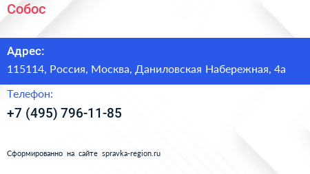 Собос по адресу 115114, Россия, Москва, Даниловская Набережная, 4а в дальнейшем Организация, размещена в следующих категориях: