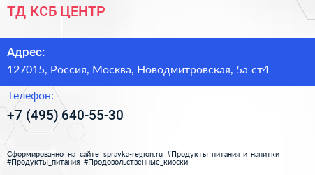 ТД КСБ ЦЕНТР по адресу 127015, Россия, Москва, Новодмитровская, 5а ст4 в дальнейшем Организация, размещена в следующих категориях: