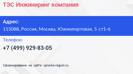 ТЭС Инжиниринг, компания по адресу 115088, Россия, Москва, Южнопортовая, 5 ст1-6 в дальнейшем Организация, размещена в следующих категориях: