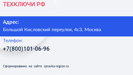 ТЕХКЛЮЧИ.РФ по адресу Большой Кисловский переулок, 4с3, Москва в дальнейшем Организация, размещена в следующих категориях: