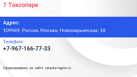 7 Таксопарк по адресу 109469, Россия, Москва, Новомарьинская, 18 в дальнейшем Организация, размещена в следующих категориях: