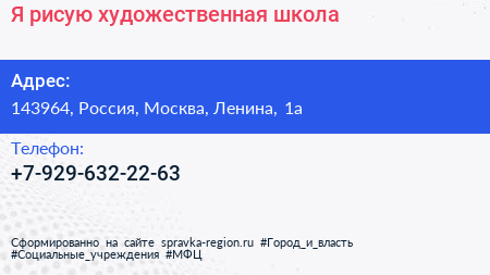 Я рисую, художественная школа по адресу 143964, Россия, Москва, Ленина, 1а в дальнейшем Организация, размещена в следующих категориях: