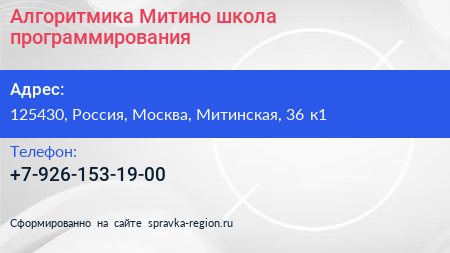 Алгоритмика Митино, школа программирования по адресу 125430, Россия, Москва, Митинская, 36 к1 в дальнейшем Организация, размещена в следующих категориях: