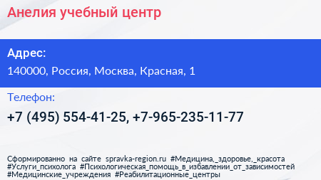 Анелия, учебный центр по адресу 140000, Россия, Москва, Красная, 1 в дальнейшем Организация, размещена в следующих категориях: