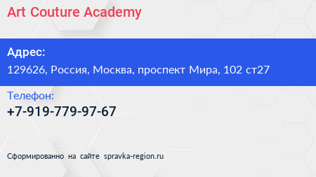 Art Couture Academy по адресу 129626, Россия, Москва, проспект Мира, 102 ст27 в дальнейшем Организация, размещена в следующих категориях: