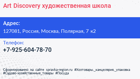 Art Discovery, художественная школа по адресу 127081, Россия, Москва, Полярная, 7 к2 в дальнейшем Организация, размещена в следующих категориях: