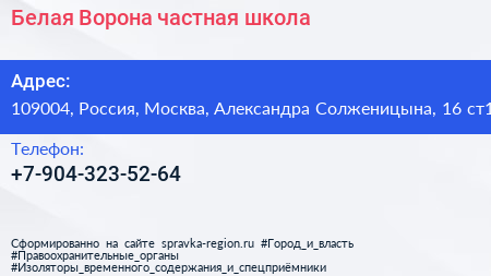 Белая Ворона, частная школа по адресу 109004, Россия, Москва, Александра Солженицына, 16 ст1 в дальнейшем Организация, размещена в следующих категориях: