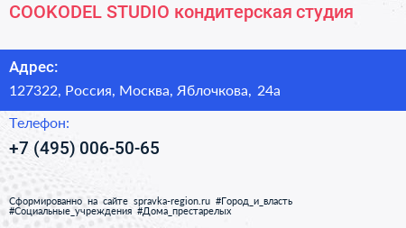 COOKODEL STUDIO, кондитерская студия по адресу 127322, Россия, Москва, Яблочкова, 24а в дальнейшем Организация, размещена в следующих категориях: