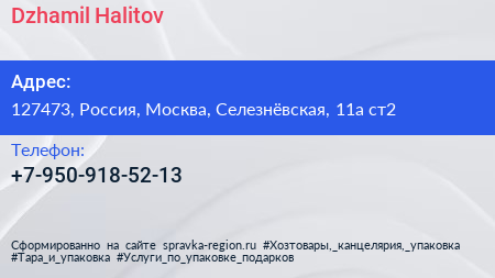 Dzhamil Halitov по адресу 127473, Россия, Москва, Селезнёвская, 11а ст2 в дальнейшем Организация, размещена в следующих категориях: