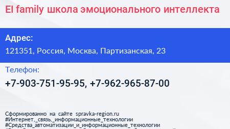 EI family, школа эмоционального интеллекта по адресу 121351, Россия, Москва, Партизанская, 23 в дальнейшем Организация, размещена в следующих категориях: