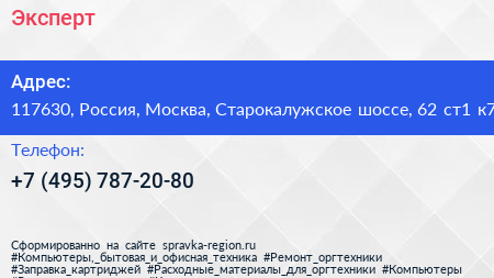 Эксперт по адресу 117630, Россия, Москва, Старокалужское шоссе, 62 ст1 к7 в дальнейшем Организация, размещена в следующих категориях: