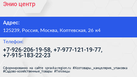 Энио, центр по адресу 125239, Россия, Москва, Коптевская, 26 к4 в дальнейшем Организация, размещена в следующих категориях: