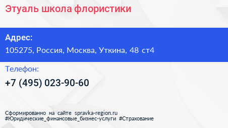 Этуаль, школа флористики по адресу 105275, Россия, Москва, Уткина, 48 ст4 в дальнейшем Организация, размещена в следующих категориях: