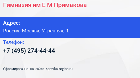 Гимназия им. Е.М. Примакова по адресу Россия, Москва, Утренняя, 1 в дальнейшем Организация, размещена в следующих категориях:
