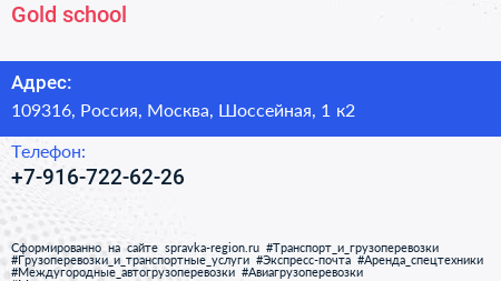 Gold school по адресу 109316, Россия, Москва, Шоссейная, 1 к2 в дальнейшем Организация, размещена в следующих категориях: