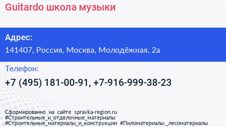 Guitardo, школа музыки по адресу 141407, Россия, Москва, Молодёжная, 2а в дальнейшем Организация, размещена в следующих категориях: