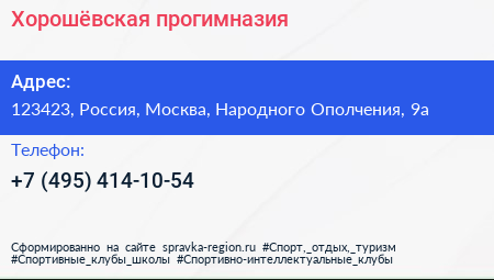 Хорошёвская прогимназия по адресу 123423, Россия, Москва, Народного Ополчения, 9а в дальнейшем Организация, размещена в следующих категориях:
