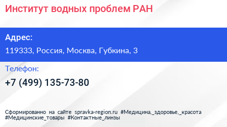 Институт водных проблем РАН по адресу 119333, Россия, Москва, Губкина, 3 в дальнейшем Организация, размещена в следующих категориях: