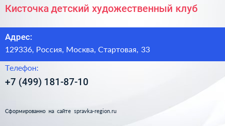 Кисточка, детский художественный клуб по адресу 129336, Россия, Москва, Стартовая, 33 в дальнейшем Организация, размещена в следующих категориях: