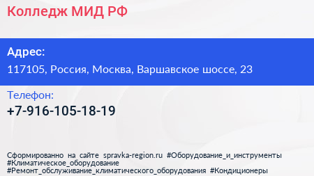 Колледж МИД РФ по адресу 117105, Россия, Москва, Варшавское шоссе, 23 в дальнейшем Организация, размещена в следующих категориях: