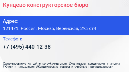 Кунцево, конструкторское бюро по адресу 121471, Россия, Москва, Верейская, 29а ст4 в дальнейшем Организация, размещена в следующих категориях: