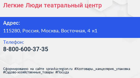 Легкие Люди, театральный центр по адресу 115280, Россия, Москва, Восточная, 4 к1 в дальнейшем Организация, размещена в следующих категориях: