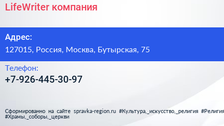 LifeWriter, компания по адресу 127015, Россия, Москва, Бутырская, 75 в дальнейшем Организация, размещена в следующих категориях: