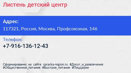 Листень, детский центр по адресу 117321, Россия, Москва, Профсоюзная, 146 в дальнейшем Организация, размещена в следующих категориях: