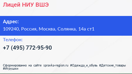 Лицей, НИУ ВШЭ по адресу 109240, Россия, Москва, Солянка, 14а ст1 в дальнейшем Организация, размещена в следующих категориях: