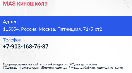 MAS, киношкола по адресу 115054, Россия, Москва, Пятницкая, 71/5 ст2 в дальнейшем Организация, размещена в следующих категориях: